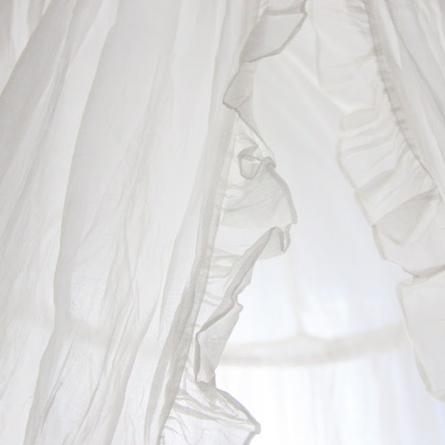 not one to lie down much, as soon as he was off chasing that little white ball on the golf course, i got out my ladder and hung these cute white curtains that i found at an estate sale this week....just tacked them up with push pins...love how they hide the window framing and soften the view....the branch cut from my curly willow tree and hung above, adds an organic feel and echoes the beautiful bare winter trees that i see outside.